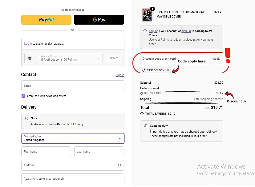 - Locate the “Coupon Code” or “Discount Code” field on the checkout page.