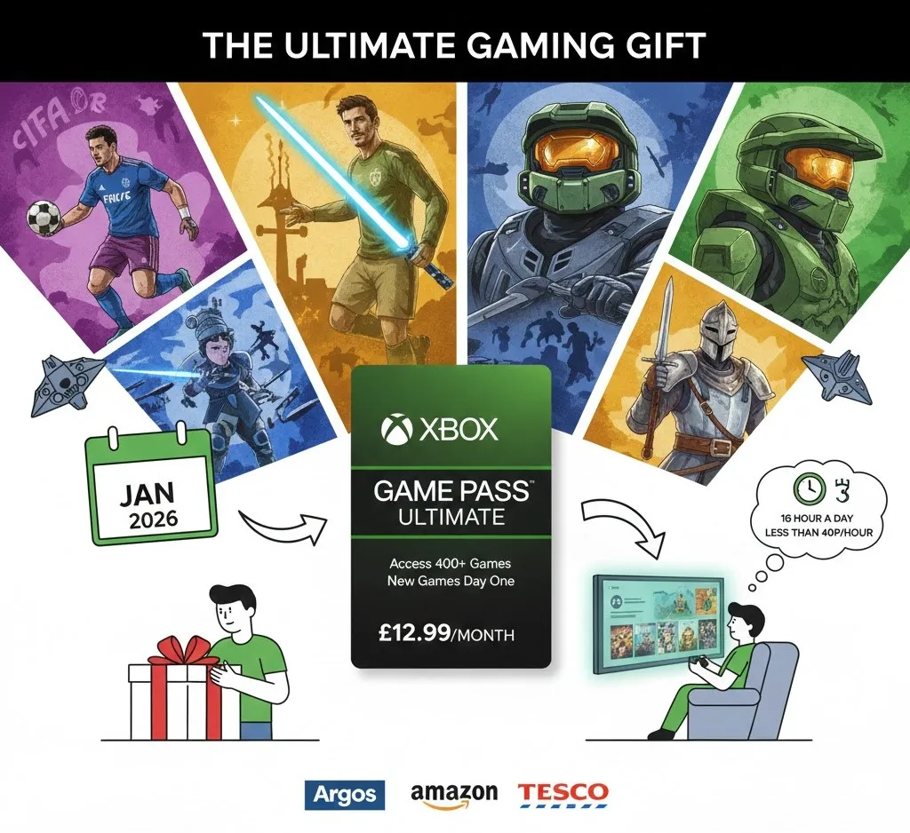 Why It’s Smart A new AAA game in the UK now costs £69.99. For the price of one game, you can give him nearly 6 months of Game Pass Ultimate. He’ll use this every single day. If he plays for just 1 hour a day, the cost-per-hour is less than 40p.