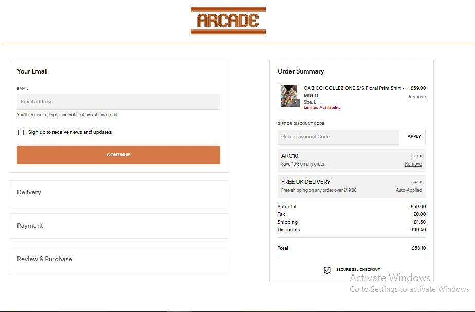 - Browse the Arcade Mens Clothing website and add your favourites to your basket.