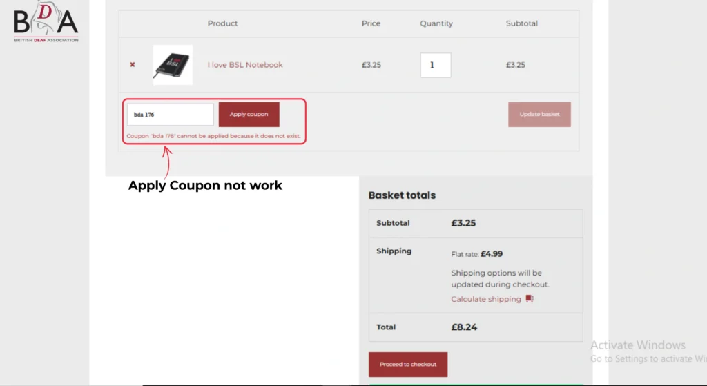 I visited https://bda.org.uk/basket/ and tried the bda 176 code. It is not a verified coupon. Scammers are using the BDA name to trick people.