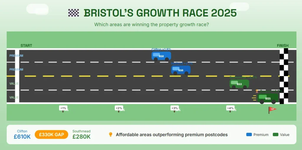 The spread across Bristol postcodes tells a story about what actually drives value in this city.