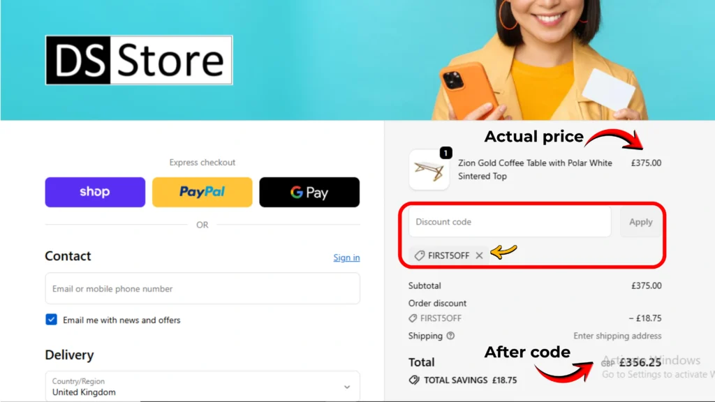 Visit the official website dsstore.co.uk and use coupon code FIRST5OFF to get 5% off your first order.
