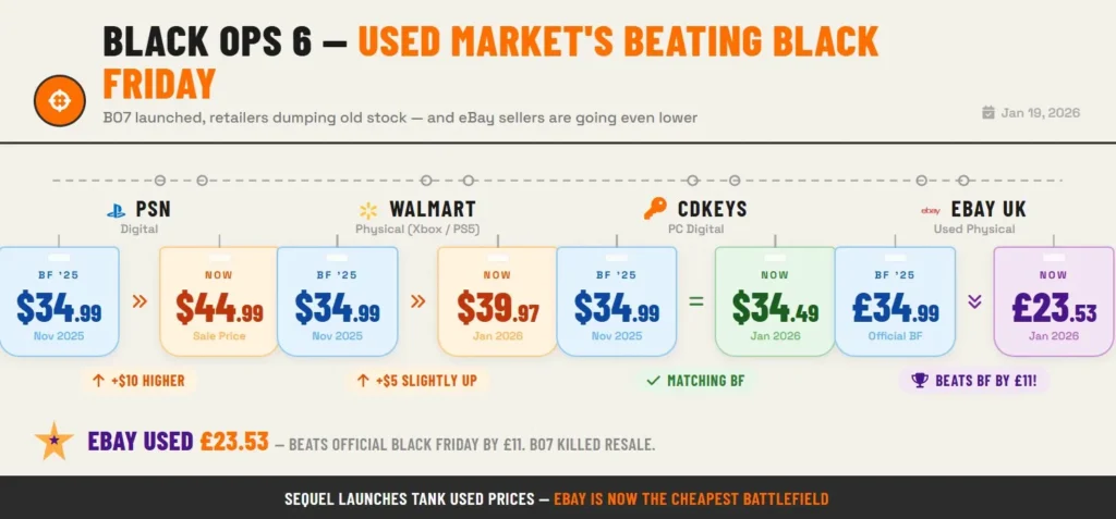 Black Ops 6 came out in October 2024, so by January 2026 it’s technically old stock. Black Ops 7 launched late last year, which means retailers and second-hand sellers are dumping BO6 to make room.