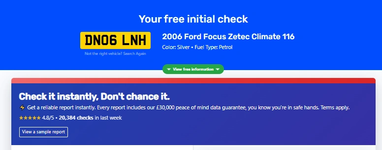 The very first step I show my friend was a free car check. All you need is the registration number, and the results come back in seconds.
