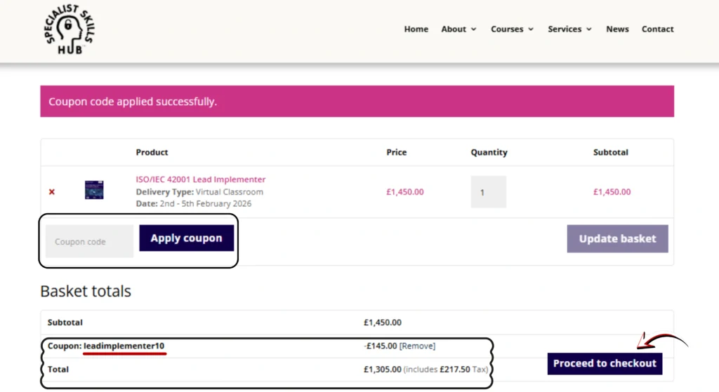 Grab this chance to join the PECB Certified ISO42001 Lead Implementer Course with Specialist Skills Hub now available at a special 10% discount.