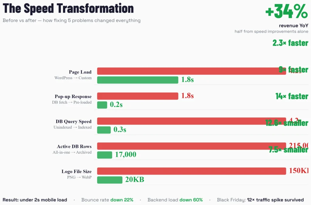 Site speed became the biggest headache. Users bouncing because pages took 8 seconds to load. Mobile shoppers giving up mid-search because images wouldn’t display. Codes not working because our database was a mess. We’ve spent the last year fixing these problems, and I asked our developers and operations manager to break down what actually worked.