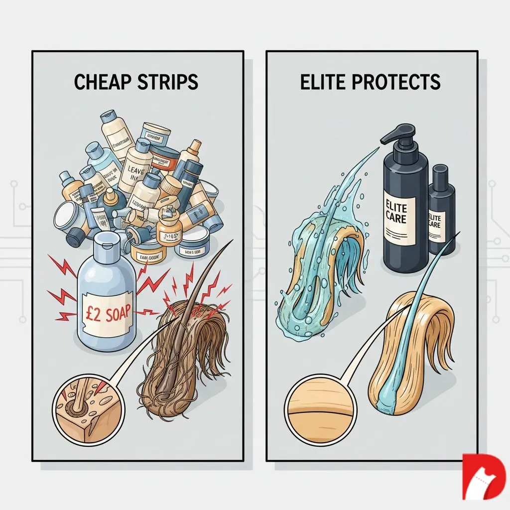 - pH Imbalance: Many budget products are more alkaline, which forces the hair’s outer cuticle open, leaving it vulnerable to damage.