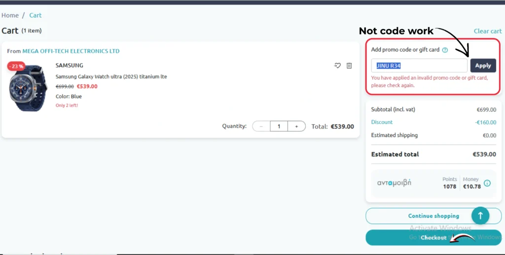 The coupon code has a space in it. Professional codes like “JINUR34” are continuous strings without gaps. The code “JINU R34” breaks this rule completely. Real businesses never use spacing in coupon codes.