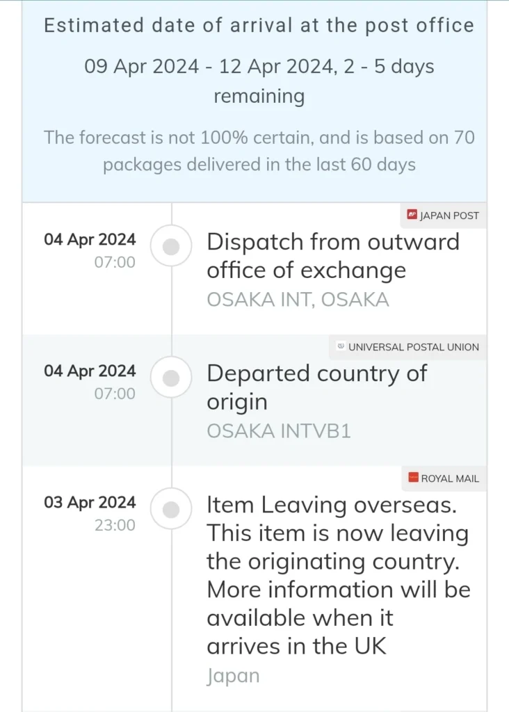 - Keep checking your tracking the update you want to see is “Item has Left Our International Processing Centre”.
