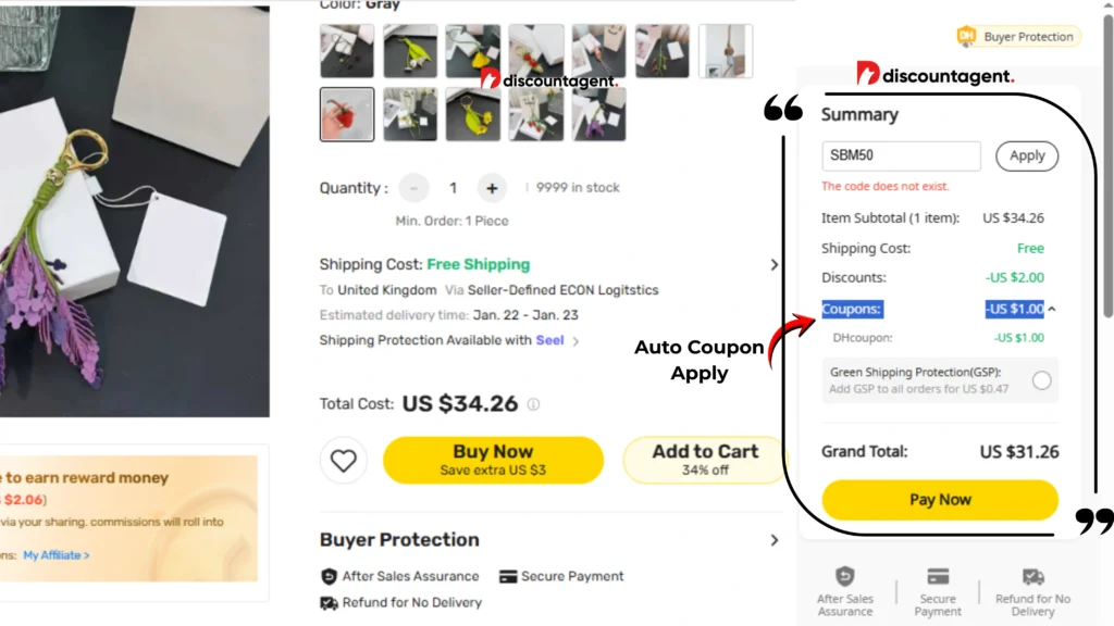 Visit DHgate. Go to Discounts & Coupons. Select all new buyer coupons. The coupons are automatically applied at checkout.