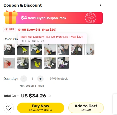 Things become interesting here. DHgate is giving automatic savings in larger orders. On spending 15$ you would receive one dollar off your order. The discount increases with the size of your basket to a maximum of 20 off.