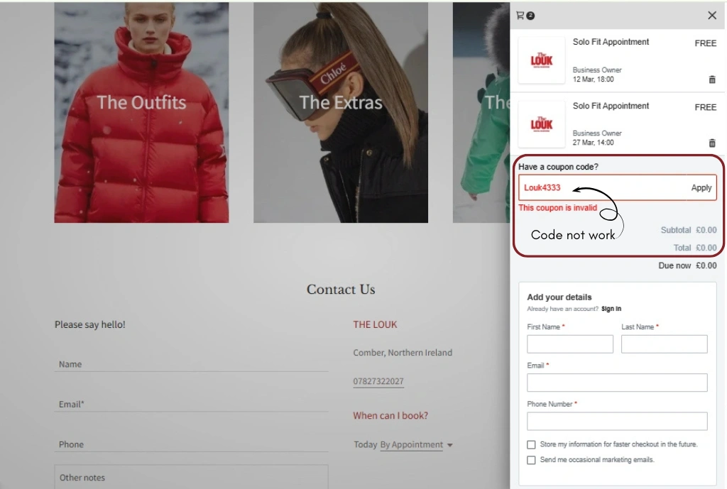 Since The Louk is a real business, here’s how to resolve the code issue: