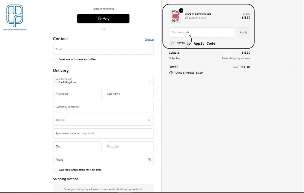 This is not a sitewide code. MUP have picked a specific reading list of queer history books for this promotion.