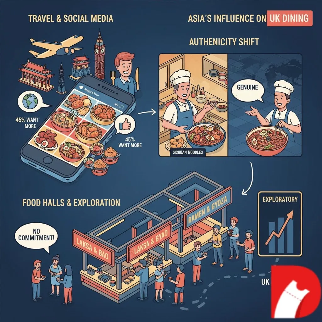 Emerging Asian cuisines are gaining popularity across the UK, with live cooking demonstrations and street food-inspired offerings showing particularly strong growth in urban areas. Interactive dining experiences — where the cooking itself becomes entertainment — are outpacing traditional restaurant formats.