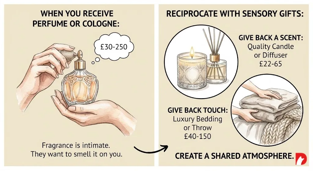 Fragrance is intimate. Your partner chose something they want to smell on you, which means they’re thinking about closeness.
