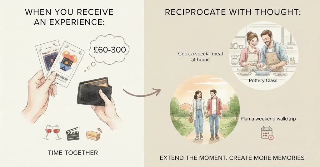 If they’ve booked dinner, you book drinks beforehand or dessert elsewhere after (add £20-40). If they’ve planned a day trip, you plan the overnight stay (£80-150 for a decent B&B). If they’ve bought theatre tickets, arrange the pre-show meal (£40-70).