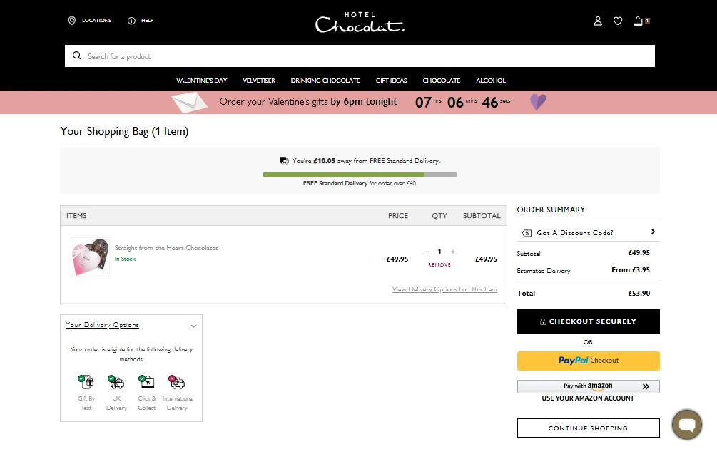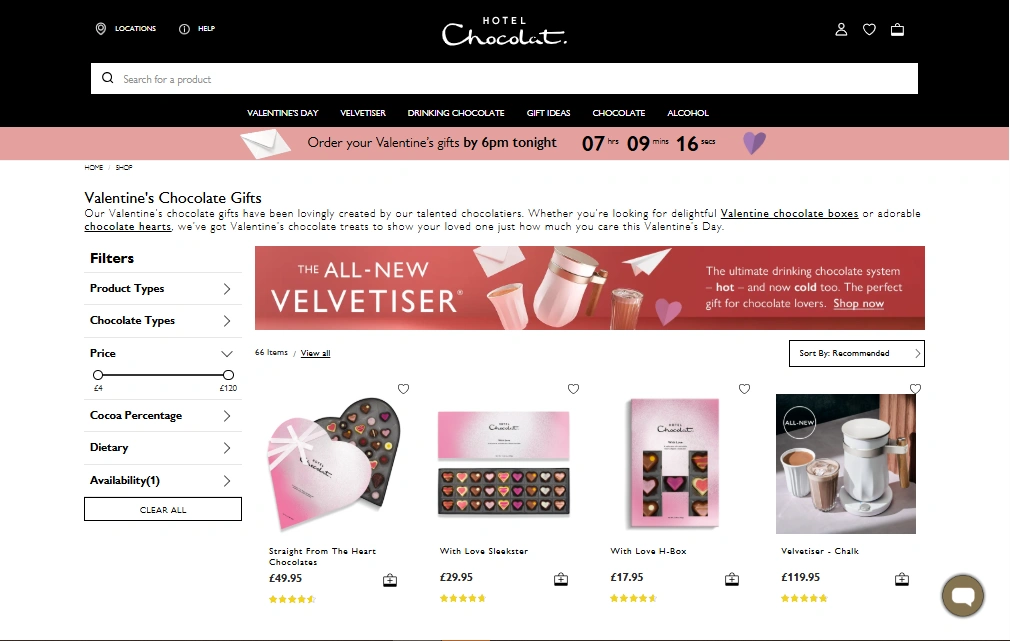 - Browse & Shop β Head back to the Hotel Chocolat website. Explore their Valentine’s Day gift range β luxury truffle boxes the Classic Sleekster, hampers, Velvetiser bundles and more. Click “Add to Bag” on your chosen items.