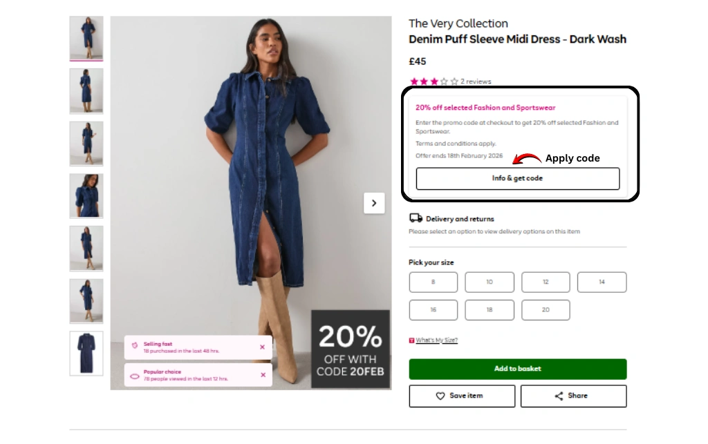 “Enter code 20FEB at the checkout. Offer ends 18th February 2026.”