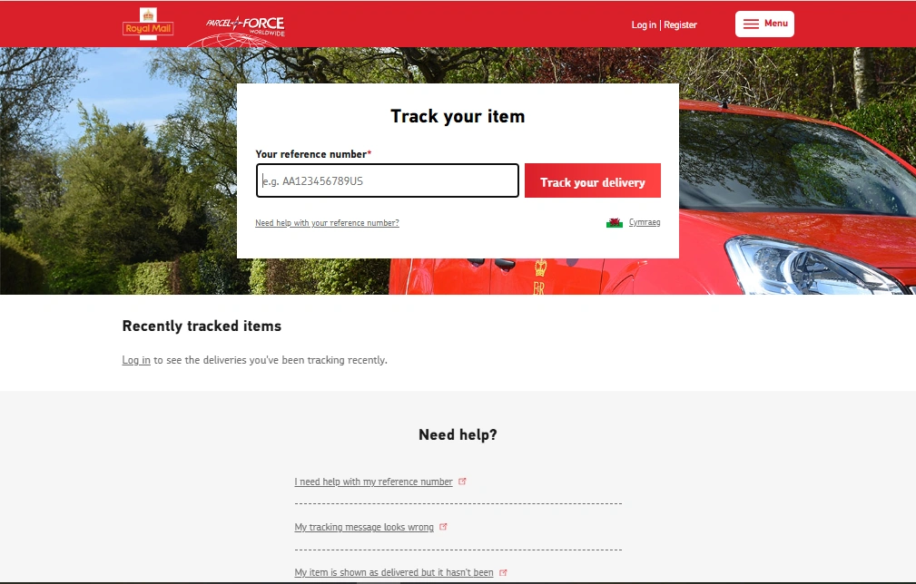 Check the tracking number at royalmail.com/track-your-item. Royal Mail never asks for payment by text or email.